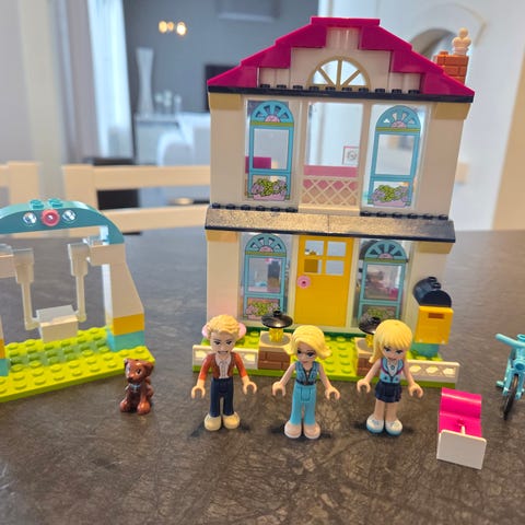 Stephanien talo. Lisäkuvissa huomiot osien suhteen, ihan pari pikkuosaa, kuten veistä puuttuu. Pari vaihdettu liki samanlaisiin. Rakentamisen kaikki oleelliset osat tallessa