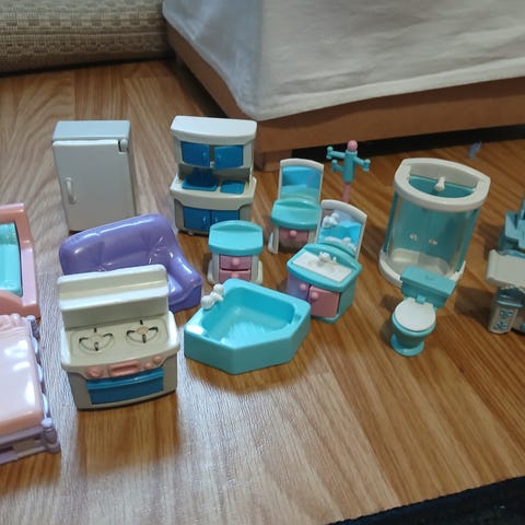 Nukkekotiin kylpyhuonetarvikkeita