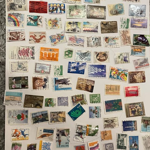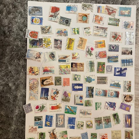 Kuvan postimerkit, nouto tai postitus diili tai kirje. Katsotaan sen mukaan mitä pakettiin tai kirjeeseen tulee.