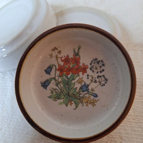 Keraaminen kulho, sisältä ja yläosasta lasitettu.