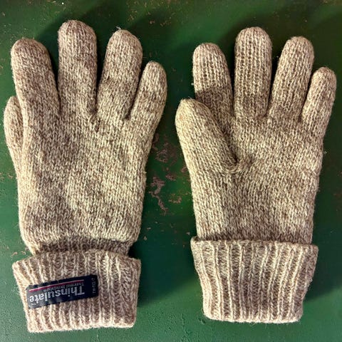Thinsulate neulesormikkaat. Molemmat ovat S-kokoiset. Väri vihreä. Pehmyt lämpöinen flanellivuori. Etusormessa reikä ja sormikkaissa myös sormien suojaksi vedettävä sormisuoja. 5 e/ pari, yhteishintaan 9 e