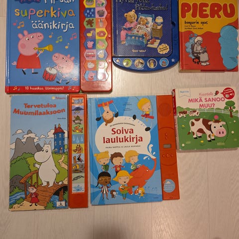 Tuomo Lahdelma: Pimpula pampula poo, lauluja ja loruja ihan pienille. Kovakantinen. Kansissa kulumaa, muutoin ikäisekseen hyvässä kunnossa oleva kirja. Kissatalous