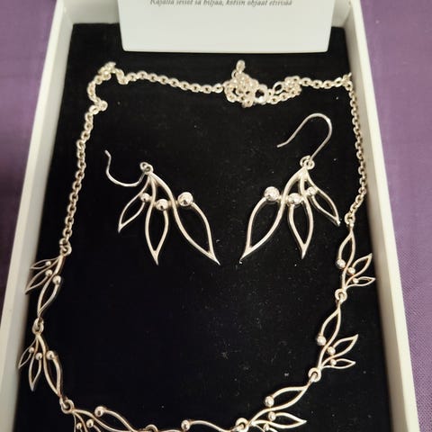 Kalevalakorun hopeinen Kielo kaulakoru. Ei kertaakaan käytetty.