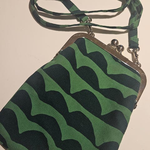 Marimekon kankainen pikkulaukku, klipsikiinnitys.