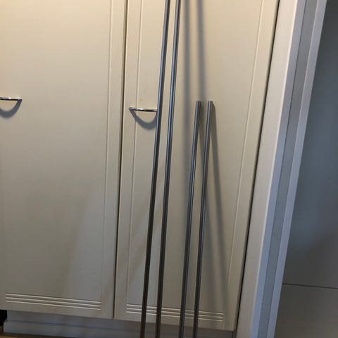 - 1 kpl, säädettävä pituus 67...126 cm + päät. Ohut kullanvärinen putki, halk. 11 mm. 3 Eur