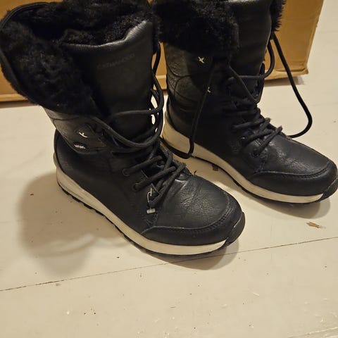 Hyväkuntoiset koon 36 talvikengät, sisäsivussa vetoketju. Kissatalous.