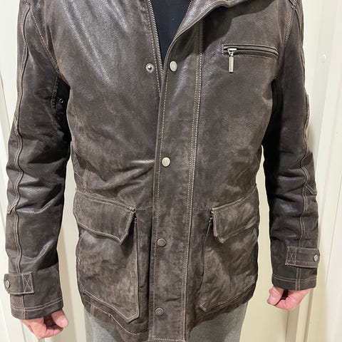 Saki merkkinen mokkanahkatakki Koko 52 Takissa lämmin kaulus, jonka voi irrottaa. Vuorellinen takki.