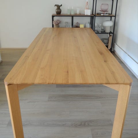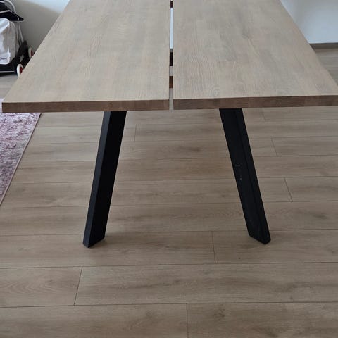 Myydään Suomalainen Kaani-merkkinen hyväkuntoinen täyspuinen ruokapöytä, johon teetetty mittatilaustyönä lasi päälle (maksanut 500e).
