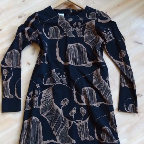 Ihana Metsola Panda pitkähihainen mustavalkoinen mekko arkeen ja juhlaan. Takana kaunis vetoketju.