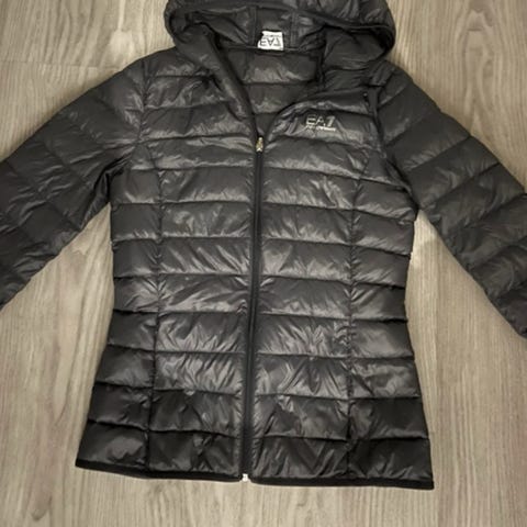 Moitteettomassa kunnossa oleva EA7 parkatakki karvahupulla.