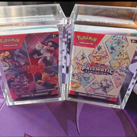 Harvinaista herkkua, eli muoveissaan oleva avaamaton Pokemon Trading figure game -pelin mukana tullut pakkaus, jossa sääntökirjojen ym lisäksi on vain tätä sarjaa varten painetun Pokemon tcg -pelin kolme korttia: X-accuracy, Max revive ja Switch.