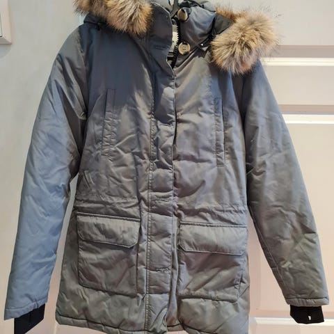 Tumman sininen Nly Trend City Parka toppatakki koko 34. Uusi, käyttämätön. Edessä on läppätaskut neppareilla ja ylhäällä sivutaskut. Hihansuissa resorit peukaloaukoilla. Huppu on irrotettava ja reunassa on irrotettava tekokarva. Sisällä povitasku vetoketjulla. Takki suljetaan vetoketjulla ja napeilla. Vyötäröllä sisäpuolella on kiristysnyöri. Materiaali 100 % polyamidi.