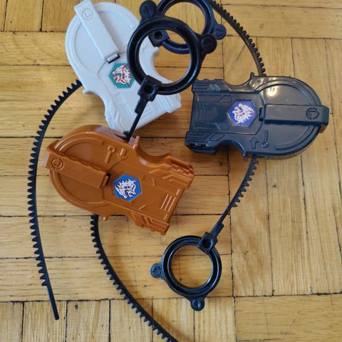 Erilaisia Beyblade -laukaisimia kasa.