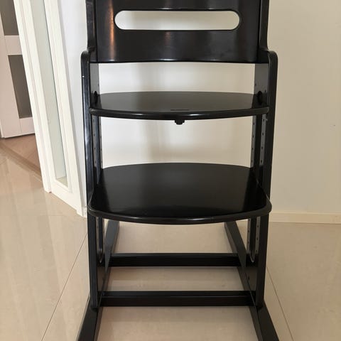 Tässä Baby Danin mustassa syöttötuolissa on sulavalinjainen muotoilu pyöristetyillä reunoilla ja vahvistettu selkänoja. Syöttötuolissa lapsi istuu turvallisesti ja tuetusti kuudesta kuukaudesta alkaen, sillä tuoli tukee lapsen jalkoja ja selkää parhaalla mahdollisella tavalla. Tuoli on suunniteltu kestämään 1-3-vuotiaan välillä reipastakin käsittelyä ja se muuntautuu mukavaksi istuimeksi koululaiselle niin ruokailuun kuin läksyjen tekoon. Tuolissa on erityispitkät tukijalat ja se seisoo tukevasti lapsen kiivetessä tuolille ja siitä pois.