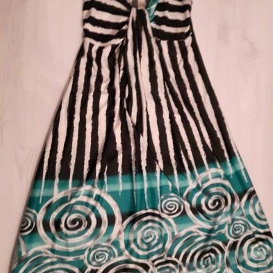 Kesä mekko , selästä auki . Ohut kangas. Uusi vain 3euroa . Koko s/ m voi tehdä vaikka pitkän hameen