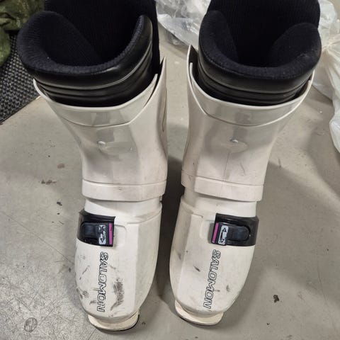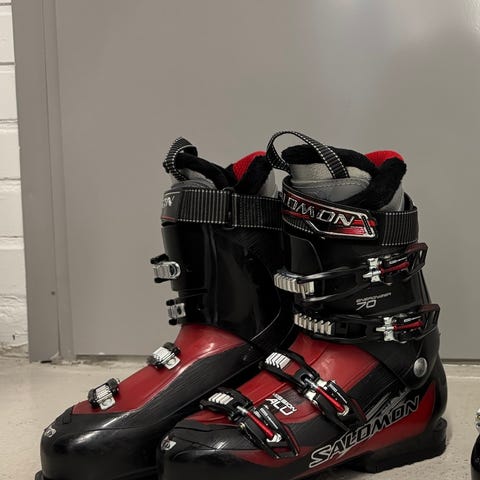 Tarjolla aikuisten mustat Salomon SX82 koko n. 44 laskettelumonot, kohtalainen kunto (pientä kulumaa).
