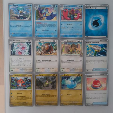 Yhteishintaan kuvanmukaiset keräilykortit. Mukana mm. Quaxwell ja tämän kehitysmuoto Quaquaval / Ferroseed ja tämän kehitysmuoto Ferrothorn.