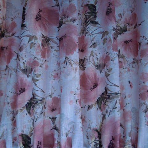 Jotexin läpikuultavat kukkaverhot.