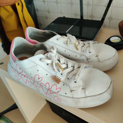 Hienot korkevartiset lenkkarit, alle viisi käyttökertaa ollut. Koko 41 ja vastaa kokoaan, sisältä nahkaa. Mustat.