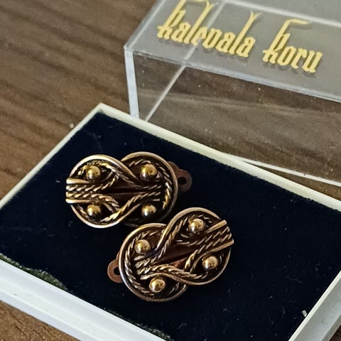 Myydään kuvassa näkyvät harvinaiset Töyri onnenlintu korvakorut. Koruissa leima K.