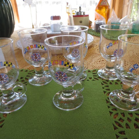8 kpl laseja Amorella-laivalta. Hienot drinkkilasit vaikka veneeseen. Ehjät ja siistit.