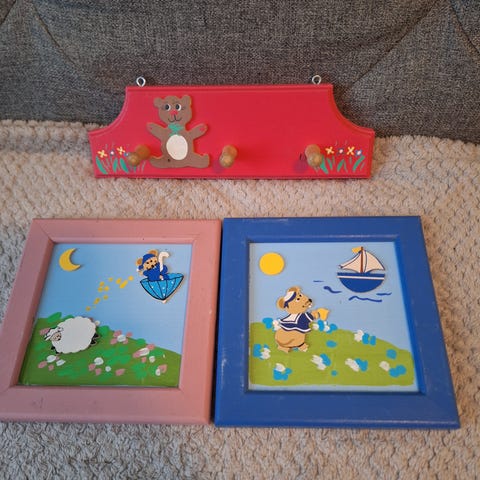 Puiset naulakko, henkari ja kirjatuki yht. 8 euroa.