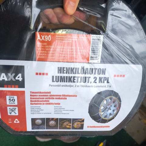 Myydään käyttämättömät auton lumi-, jääketjut. Sopivat 16 tuuman renkaille, kts Biltema art.37-127.
