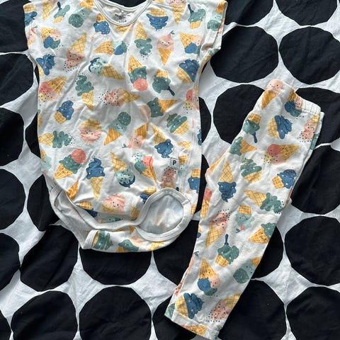Ihana joustavaa kangasta oleva housupuku kesään. Pääntie joustava, haaroissa nepparikiinnitys joka aukeaa koko matkalta. Nouto tai ostaja maksaa postikulut.