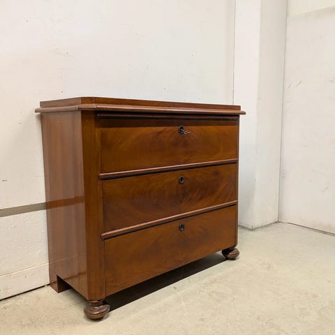 Uniikki, päällystetty vanha lipasto, kestää kostealla pyyhkimistä. Muutamasta kohdasta vähän alkanut lohjeta, uusi lakka päälle varmistaa, ettei pahene. Nämä näkyy kuvissa. Kolme laatikkoa, ylin lukittavissa.
