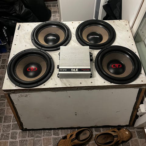 Caliber -merkkinen 12" autosubbari kotelolla ja refleksiputkella. Toimivana irroitettu. Tehoista tai tilavuudesta ei mitään tietoa. Kotelo jäykkää tekoa. Ei mihinkään äänenpainekisoihin mutta kyllä tällä kilven sai rämisemään. Tällä hetkellä ei testausmahdollisuutta, paitsi jos sulla on itselläs laitteet mihin kytkeä. Elementin suoja/koristekehässä halkeama, näkyy kuvissa.