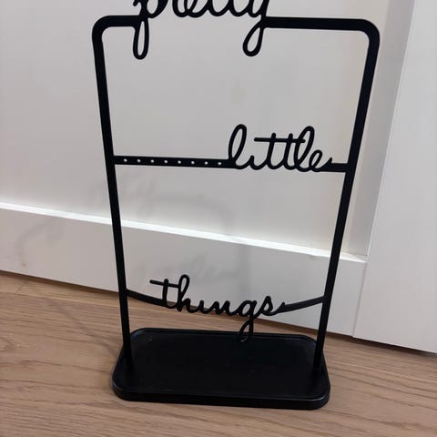 Näyttävä suurikokoinen mustavalkoinen koruteline. Kelpaa sellaisenaan myös sisustusesineeksi.
