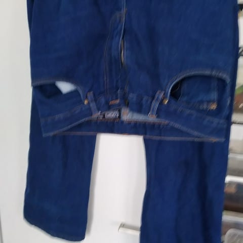 Siistikuntoiset, jämäkkää farkkukangasta olevat housut. Taitavat olla ysärituotantoa.