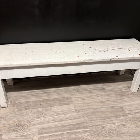 Toiminut televisiotasona viimeiset 15 vuotta. Voi toki käyttää höyläpenkkinäkin. Valmistettu noin vuonna 1870. Lohenpyrstöliitoksin ja puristimet toimii.