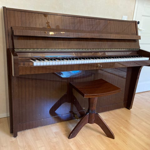 Myydään Samickin piano. Ei ole viritetty ihan vasta. Penkin saa mukaan, kuten kuvasta huomaa siinä repeämä mutta uudelleen päällystämällä hyvä jakkara. Pianossa joitain käytön jälkiä mutta eivät vaikuta soittoon. Ks. kuvat. Omat kantajat oltava!