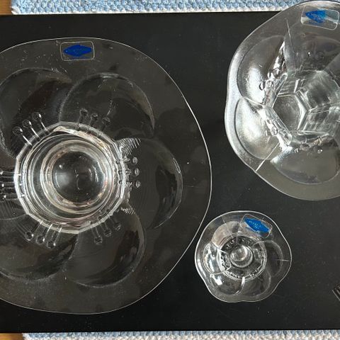 Nuutajärven lasin valmistamat osin hiekkapuhalletut kynttilänjalat 2 kpl. Kynttilänjalan korkeus on 50 mm, leveys 70 mm ja syvyys 40 mm.