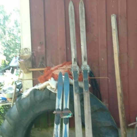 Pohjat ovat hyväkuntoiset mutta niissä on ehkä jotain teipeistä jäänyt tahroja. Suksissa on vanhat Voitto-siteet, mutta suksissa on ehkä ollut alkuun nahkamäystit. Tästä hienoa keräilytavaraa tai hienoa hiihtohenkistä sisustusta tai vaikka ihailevat katseet kääntävät hikilaudat hiihtolomalle.