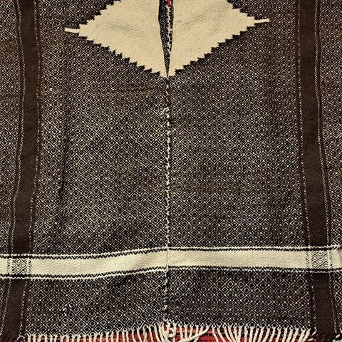 Suorakaiteen muotoinen huivi on ommeltu kiinni toiselta reunalta, jolloin siitä on tullut ponzomallinen huivi, jota voidaan pitää yllä monin eri tavoin.