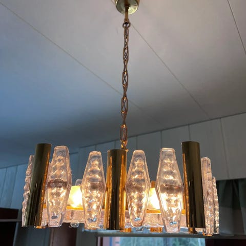 Myydään Design Carl Fagerlund kattovalaisin. Voin toimittaa lisähinnasta. Jalopuu, lasi, messinki.