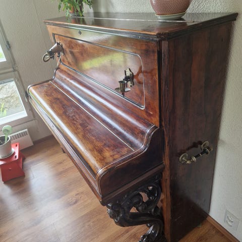 Myydään ruotsalainen antiikkipiano kynttilätelineillä. Huovat ja kielet uusittu+ kostutin asennettu