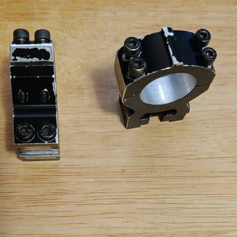 Myydään teräksiset ERÄ-merkkiset kiikarinjalat 30mm runkoputkelle. Sopinee Sakon kiilajalkaan? Mitat kuvissa.
