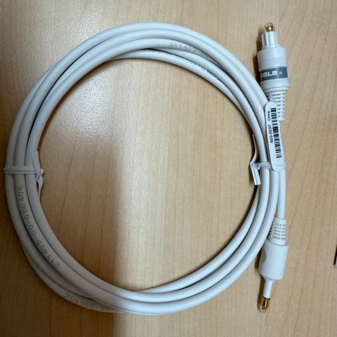 Uusi ja käyttämätön digitaalinen optinen Toslink-kaapeli kullatuilla liittimen päillä.