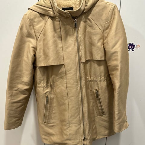 Maastonvihreä Mangon takki kultaisilla yksityiskohdilla ja irroitettavalla pörröisellä karvavuorilla. Menee siis talvitakkina sekä ilman karvaa ohuena kevät-/syystakkina. Siisti kunto koska vähän käytetty.