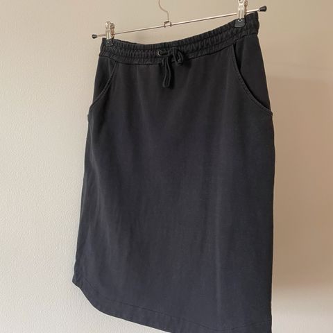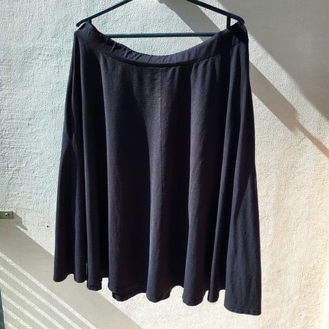 Suomalaisen Neulomon ruudukko hame. Musta harmaa. Joustavaa puuvilla trikoota, alas levenevä malli. Sivuilla taskut ja leveä vyötärö kaistale. Musta väri. Vastaa kokoa M-L. Käytetty siisti.