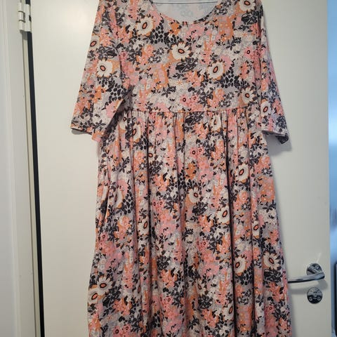 Vila kuosikimono. Tummansinisellä pohjalla kiva kuosi. Solmittava vyö. Menee 34-38 kokoiselle.