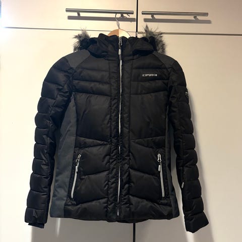 Turkoosi kuviollinen, irroitettava karvahuppu, mp3 povitasku, lumilukko vyötärössä ja hihoissa, hihansuissa pientä kulumaa