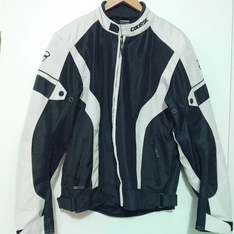Ajotakki, koko XL (noin 54), irrotettava lämpövuori, irrotettavat hihat, Hipora-kalvo, olka-, hartia- ja selkäsuojat. Lieviä käytönjälkiä.