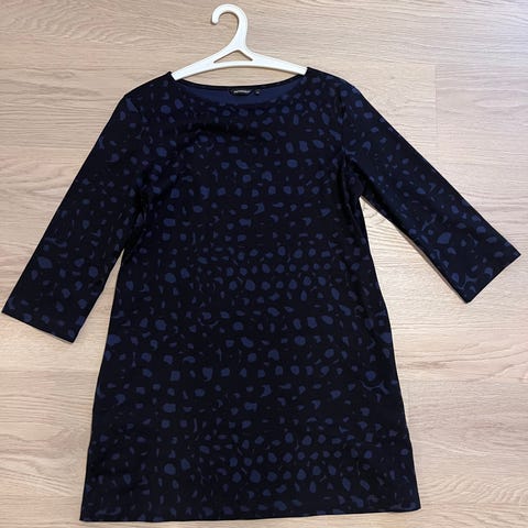 Marimekon sininen, pallokuosinen,viskoosi/elastaania oleva 3/4-hihainen tunika. Koko M. Myös muita Marimekon paitoja myynnissä!
