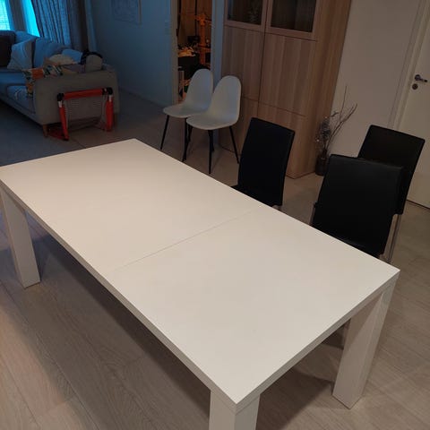 Visby ruokapöytä 180x90cm valkoisella kannella ja tammipetsatuilla jaloilla, näyttävän kevyt ruokapöytä!