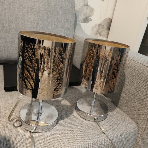 Kaksi keramiikkaista yöpöytävalasinta, hyväkuntoiset ja siistit, hp 10 e kpl, yht. 18 e. Lähetys ok