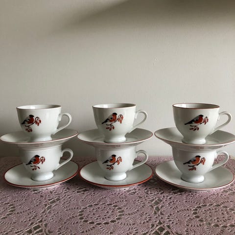 Yhteishuutona 6 kpl hienoa, melko pientä Bavaria – kuppia ja kiiltävä tarjoilulautanen.